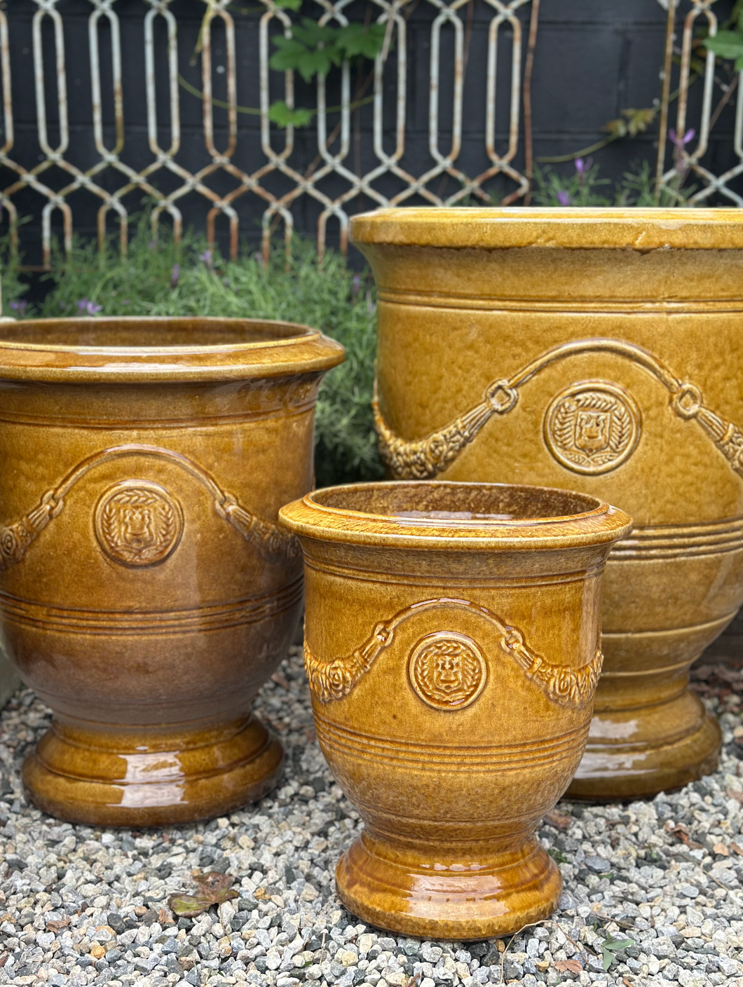 Inspired by the iconic pottery of southern France, this striking mustard-hued vessel brings Provençal charm to any interior.